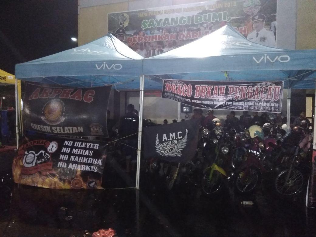 Di halaman GOR Lembu Peteng dibanjiri motor dengan sebutan yang mimin kenal dengan Gabluk mayoritas memadati halaman yang disediakan panitia. Sebanyak 72 club yang hadir dari regional Jatim dan Bali ini, saling bersikaturahim dengan suasana hangat dan santai