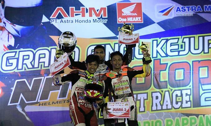 Para pebalap yang berhasil meraih mimpinya menjadi juara nasional tersebut antara lain Andi Farhat dari tim balap Astra Racing Team Sulsel di kelas tertinggi MP1 (bebek 150cc tune up seeded) dengan motor tunggangannya New Honda Sonic 150R dan di kelas MP2 (bebek 125cc tune up seeded) diraih oleh Awhin Sanjaya yang merupakan siswa Astra Honda Racing School dan saat ini bermain untuk tim balap Sidrap MPM Honda KYT Nissin IRC Trijaya.