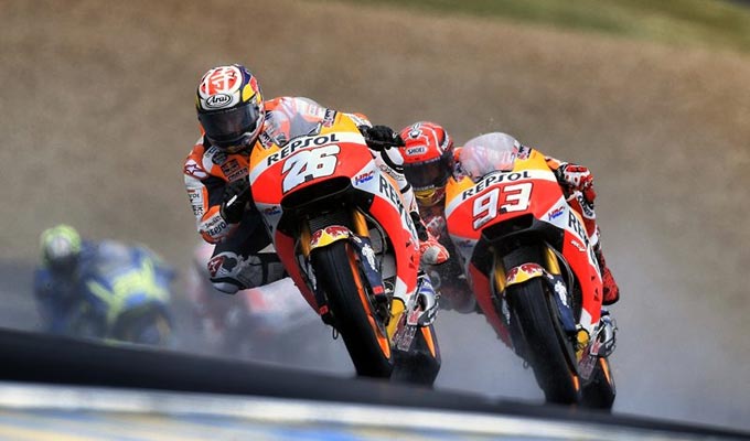 Perancis - Kedua pebalap tim Repsol Honda, Marc Marquez dan Dani Pedrosa akan mengawali balapan MotoGP seri ke-5 di sirkuit Le Mans, Perancis dari posisi 5 dan 13 (20/5).