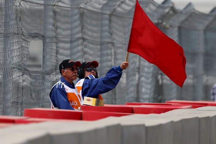 Bendera marshal warna Merah memiliki arti bahwa sebuah race / balapan dihentikan karena alasan tertentu yang sangat kuat. Biasanya disebabkan oleh suatu hal yang tidak diinginkan dan menjadi bahaya bagi pembalap lain. Alasan yang menyebabkan sebuah race bisa dihentikan bisa bersifat teknis ataupun non teknis.
