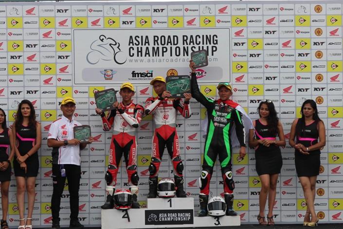Chennai, India – Pebalap muda Astra Honda Racing Team (AHRT) menyelesaikan balapan Asia Road Racing Championship (ARRC) dengan torehan positif. Seusai menuntaskan balapan seri keempat, Rheza dan Mario berhasil mempertahankan dominasi klasemen sementara posisi 1 dan 2.