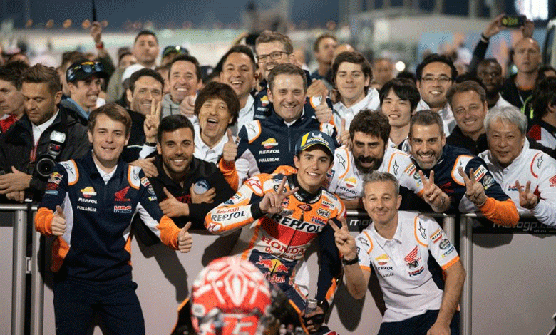 Bro, pebalap Repsol Honda MotoGP, Marc Marquez berhasil finish posisi kedua di seri pembuka MotoGP di Losail International Circuit, Qatar (10/3).