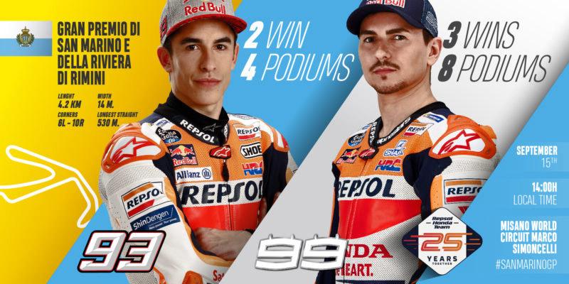 Pasangan Tim Repsol Honda, Marc Marquez dan Jorge Lorenzo merasa percaya diri untuk gelaran MotoGP di Sirkuit Misano, San Marino akhir pekan ini.