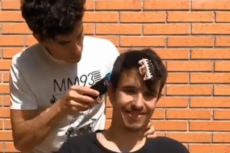 Meski jadi tukang cukur dadakan, Marc Marquez tampak begitu hati-hati dan teliti memotong rambut sang adik.