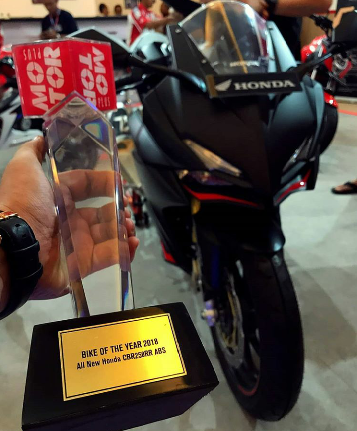 Dalam MOTOR Plus Award 2018 kali ini,juga terdapat Special Award yang dianugerahkan untuk Honda Astrea Grand , dan Kategori Best Bike of The Year yang jatuh pada All New Honda CBR250RR.