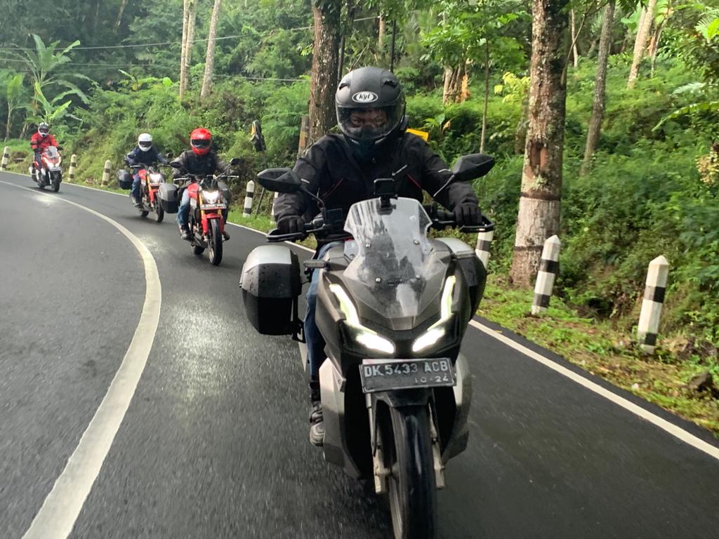 Melanjutkan perjalanan, para bikers Honda ini menggunakan skutik penjelajah Honda ADV150 dan Honda CB150RStreetfire yang tangguh untuk melintasi keindahan panorama Jawa Tengah.