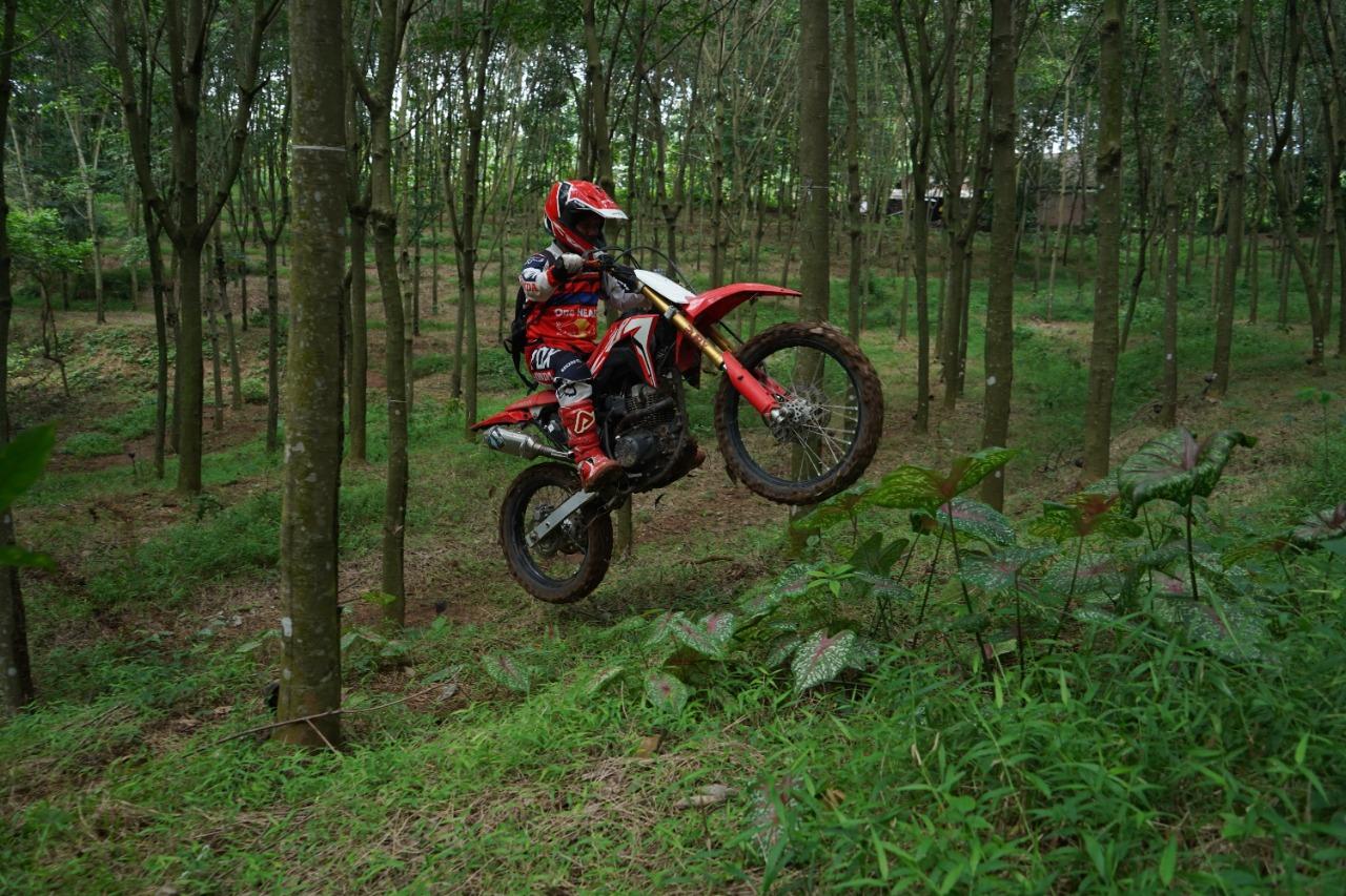 Rendi Pradipta selaku PIC Community Astra Motor Jawa Tengah menyampaikan selain untuk kegiatan gathering keakraban komunitas Crowns, kegiatan Jelajah Alam kali ini sekaligus menunjukkan penyegaran warna berupa stripping biru dan suspension cap berwarna emas yang tersemat pada varian CRF150L Extreme Red sehingga kesan tangguh dan lincah makin terpancar dari motor on-off sport favorite satu ini.