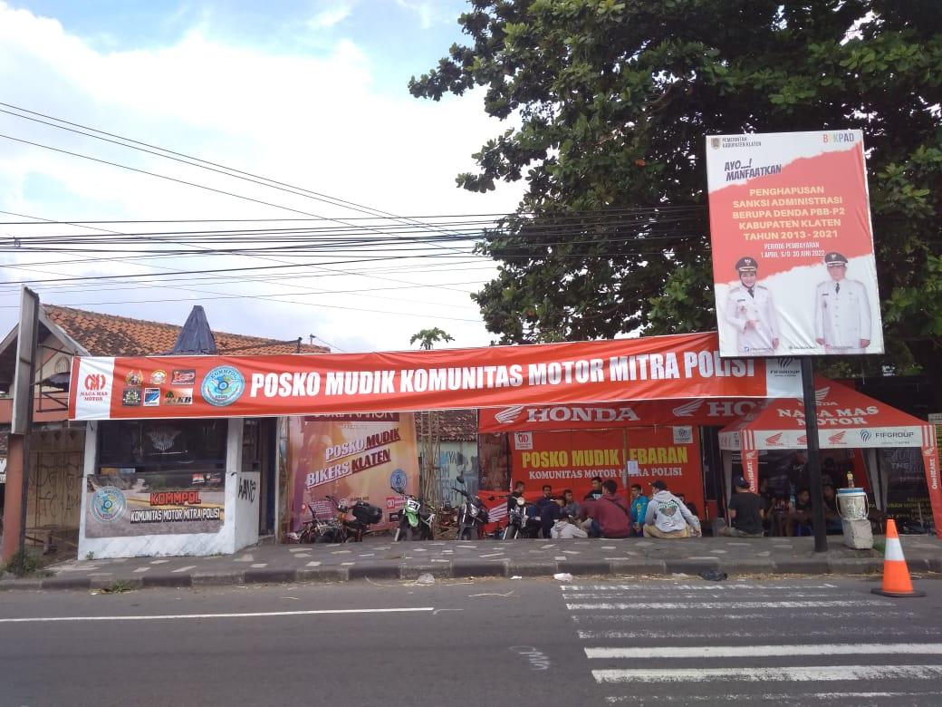 Posko mudik merupakan agenda rutin tahunan yang di Gelar Bikers/Club motor klaten di peruntukan untuk Melayani Para Bikers yang lagi mudik ataupun Pemudik Umum smua bentuk pelayanan kepada pemudik di berikan scara free,Gratis & Sukarela oleh para Relawan-Relawan jalaman yang mendapat jatah jaga Posko per shift 12 jam scara bergiiliran adapun giat aksi sosial posko seperti