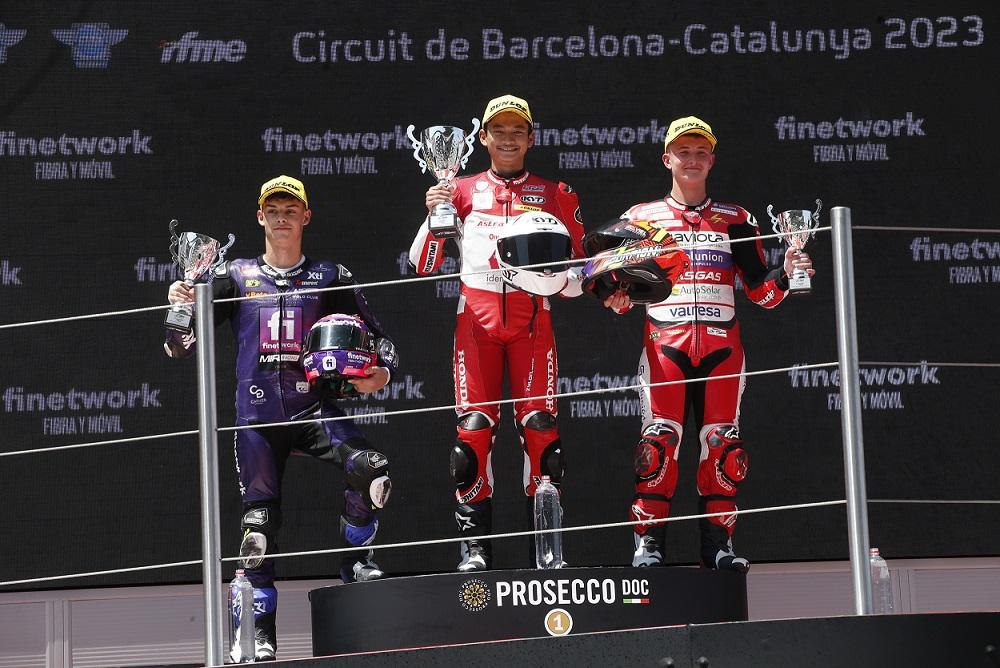 Jakarta – Pebalap Astra Honda Racing Team (AHRT), Fadillah Arbi Aditama berhasil menorehkan sejarah balap Indonesia dengan meraih podium tertinggi ajang balap FIM JuniorGP. Untuk pertama kalinya dalam kejuaraan balap di benua Eropa, bendera Merah Putih berkibar paling tinggi diiringi lagu Indonesia Raya pada putaran kelima balap kedua ajang kejuaraan balap dunia junior ini di Circuit de Barcelona-Catalunya pada Minggu, 16 Juli 2023.