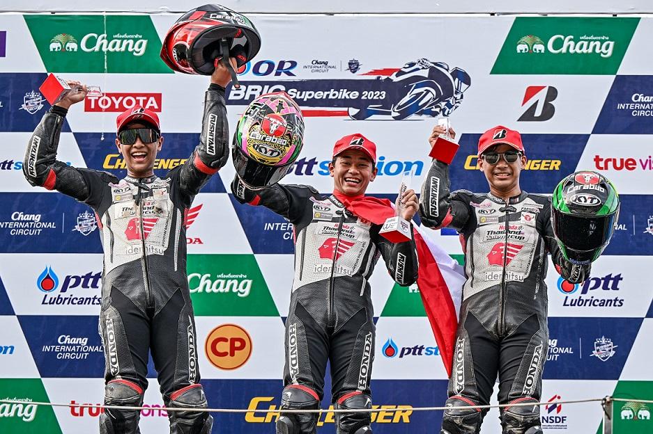 Jakarta - Prestasi membanggakan dipersembahkan oleh pebalap binaan Astra Honda Racing Team (AHRT), Decksa Almer Alfarezel, dengan meraih podium tertinggi pada dua race di seri ke-4 di ajang balap Honda Thailand Talent Cup (TTC) yang digelar di Chang International Circuit, Buriram, Thailand (28-29/07/2023).