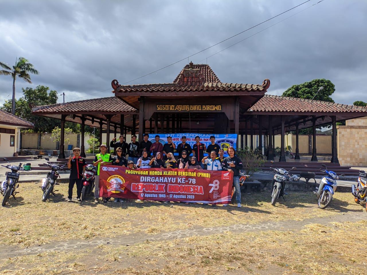 Kamis 17 Agustus 2023 PHKB ( Paguyuban Honda Klaten Bersinar ) juga berperan serta merayakan HUT RI ke 78 di konsep ROLLING CITTY KEMERDEKAAN di kemas dengan kesederhanaan tapi penuh makna dan Edukasi Sejarah.