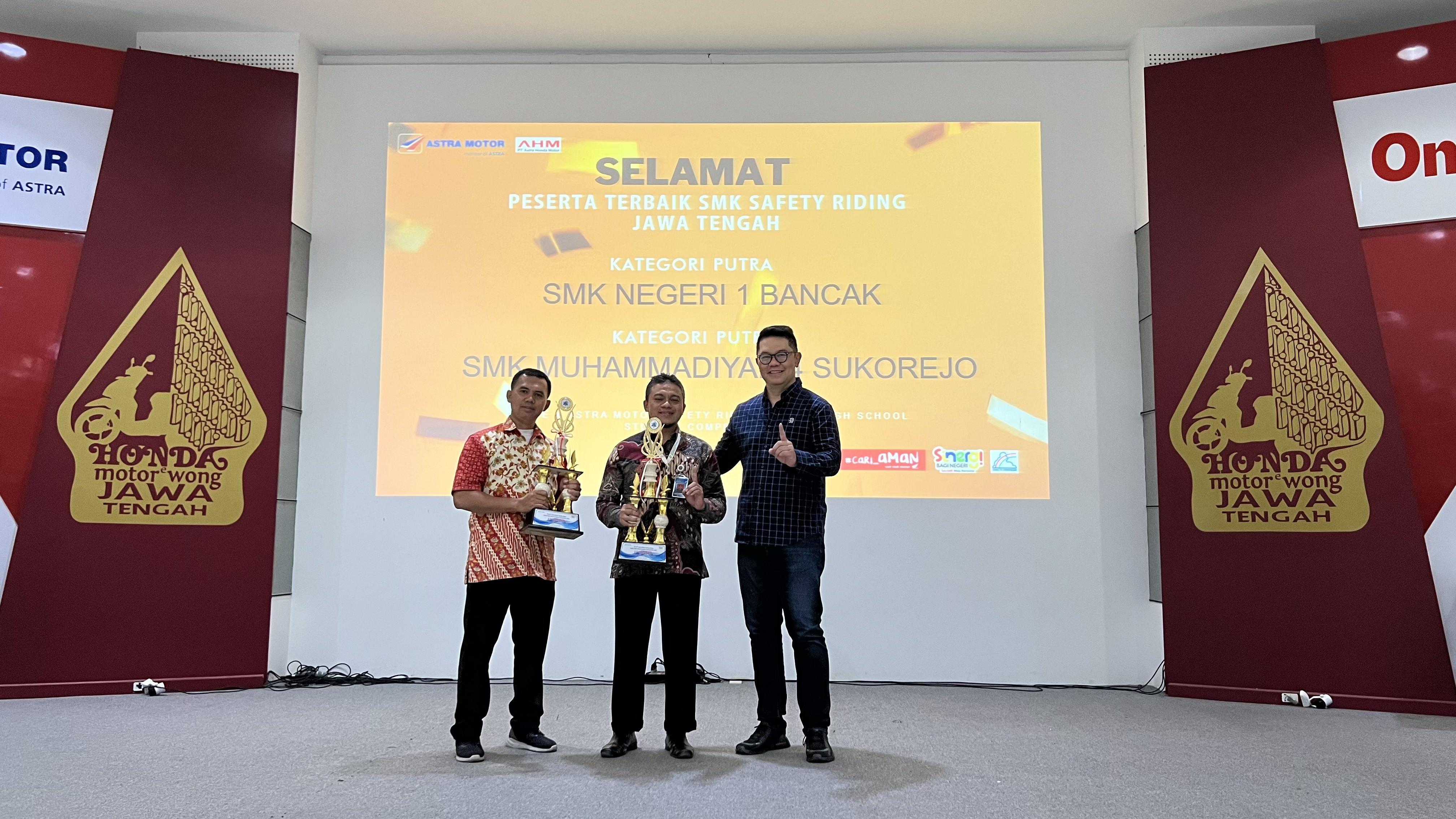 Awarding diberikan piala kepada 2 Peserta Terbaik SMK Safety Riding Astra Motor Jawa Tengah dengan Kategori Putra dari SMK Negeri 1 Bancak dan Kategori Putri dari SMK Muhammadiyah 4 Sukorejo. Selanjutnya dari Main Dealer memperkenalkan juga pertama kalinya motor listrik Honda EM1 e: dengan segala keunggulan dan product knowledgenya. Aplikasi Motorku X juga diperkenalkan bagi Kepala Sekolah yang belum tau fitur dan keunggulan dari aplikasi motor Honda di wilayah Jateng ini.